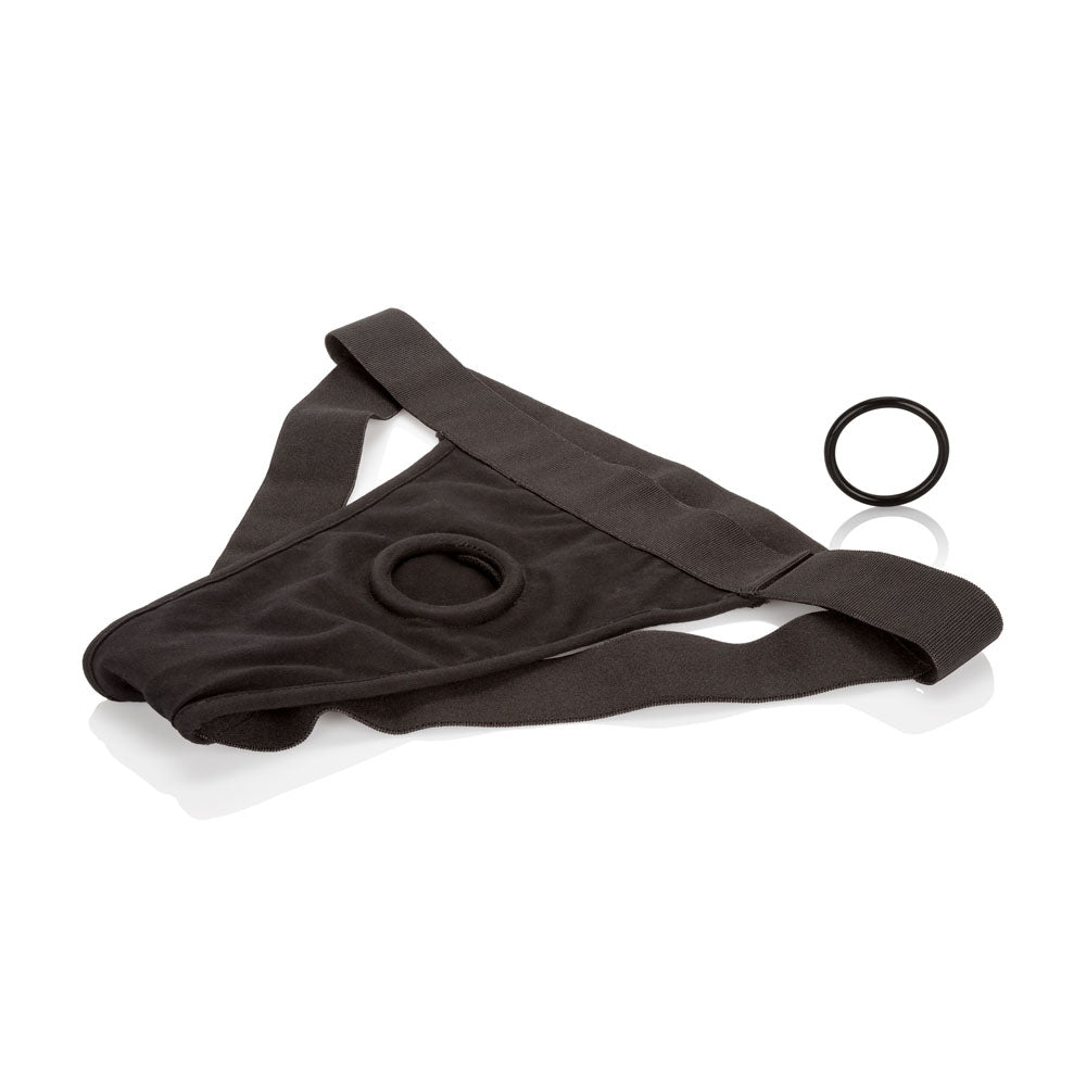 The Packer Gear Jock Strap the ultra-soft strap on harness designed with powerful performance and stretch-to-fit comfort in mind. This classic harness has a supportive extra-wide waistband, soft stretchy material and internal probe straps for the ultimate support. Enjoy double penetration pleasure with the accommodating 2-panel design and unique bullet vibrator stimulation pocket. The durable, reinforced O-ring stretches to accommodate your favorite packer, vibrator or strapless dildo. Beginners and expert users alike will love frustration-free pleasure with this easy-to-wear harness. Simply secure your favorite probe, slip into the extra stretchy waist and thigh straps and dive deep into passionate penetration or enjoy comfortable all-day wear. Enjoy easy clean up by hand washing and hanging to dry.